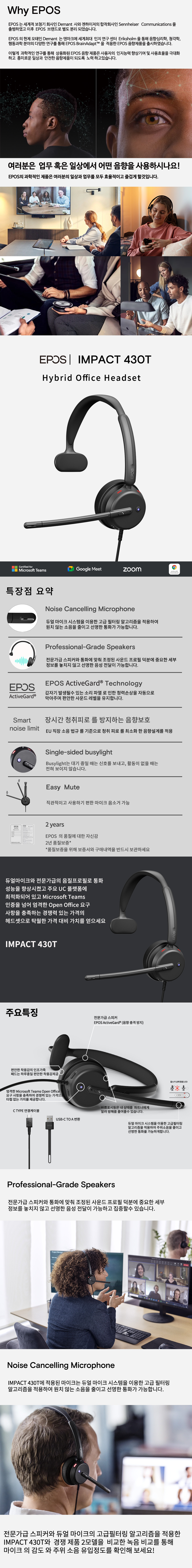 EPOS 화상회의를 위한 USB 유선 헤드셋 Impact 430T 한쪽귀형